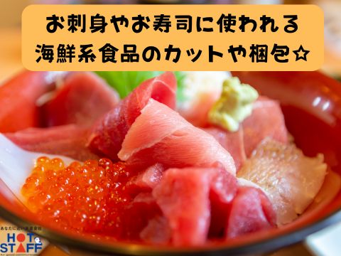 お寿司や海鮮丼などで使用するお魚の盛り付けやカットのオシゴト☆